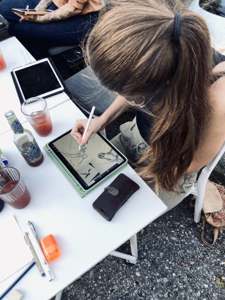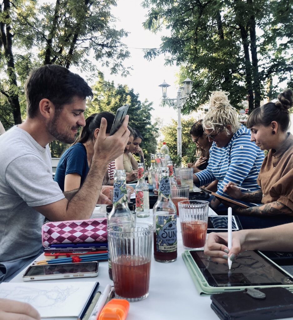 Was den Illutreff besonders macht, ist die Atmosphäre: Offenheit, gegenseitige Unterstützung und ehrliches Interesse aneinander. Hier treffen Berufseinsteiger:innen auf erfahrene Illustrator:innen, analoge Zeichner:innen auf Digital Artists, Auftragsprofis auf freie Künstler:innen.